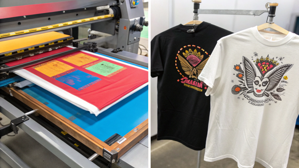 Traditional Bulk Screen Printing Simple designs, large order volumes Durability and opaque color vibrancy